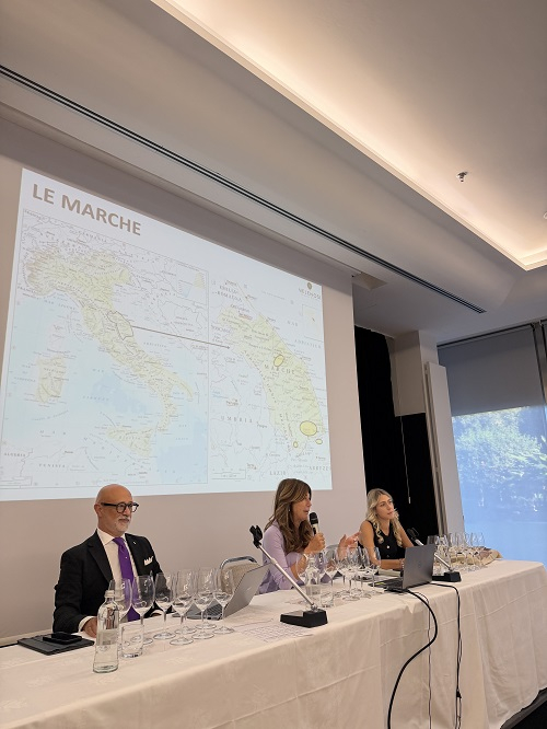 Durante la degustazione ospitata nella sede della Fondazione Italiana Sommelier, Angela e Marianna Velenosi hanno condiviso il racconto di un territorio “bello e ancora inesplorato”, dove la forza della natura si fonde con la sensibilità di chi sa trasformarla in emozione.