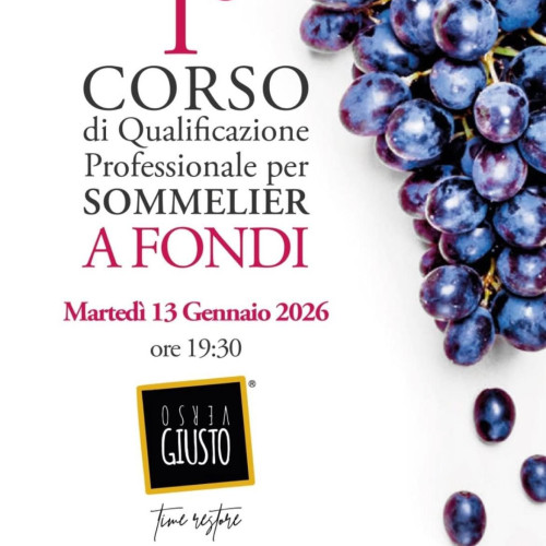 Il 1° Corso Professionale per Sommelier da Martedì 13 Gennaio 2026 a Martedì 24 Novembe 2026 nel turno serale dalle 19:30 alle 22:00 | Verso Giusto - Via degli Osci, 5A a Fondi