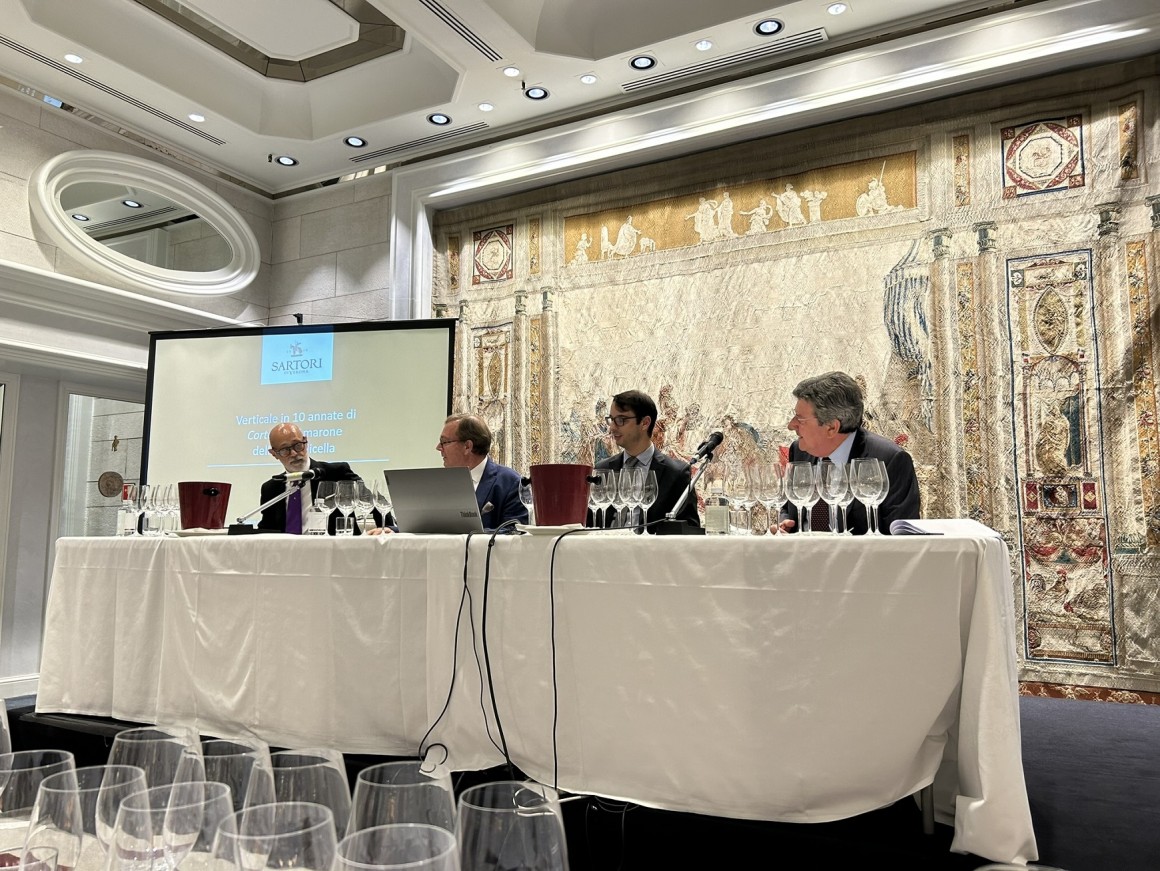 Un viaggio indietro nel tempo immersi nelle diverse sfumature di un grande vino, un arco temporale lungo quasi 25 anni attraverso le dieci annate dell’Amarone della Valpolicella Classico Corte Brà di Casa Sartori 1898 presentate alla Terrazza Monte Mario dell’Hotel Rome Cavalieri, sede della Fondazione Italiana Sommelier. Una bella storia narrata da Andrea Sartori, proprietario di Casa Sartori, insieme all’enologo Franco Bernabei che dal 2000 collabora con l’azienda e Luca Bonetti, enologo residente; ai comandi della degustazione Luciano Mallozzi, docente della Fondazione.