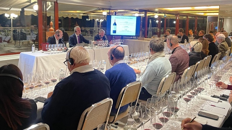 Ed eccoci finalmente alla degustazione: 10 vini, 10 annate, 10 racconti unici. Una sfida affascinante e complessa, resa ancora più speciale dalla presenza di due figure di spicco della enologia francese: Christian Seely, Managing Director di AXA Millésimes e Pierre Montégut, Directeur Technique di Château Pichon Baron. Insieme a loro, Paolo Lauciani, docente della Fondazione Italiana Sommelier, ci ha guidato con passione e maestria in questa passeggiata a ritroso negli anni. Ne è emerso un affresco di straordinaria autenticità, che conferma Château Pichon Baron un emblema di eccellenza e l’incarnazione più pura del terroir di Pauillac.